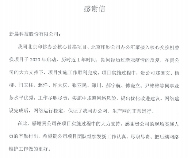 北京印钞有限公司感谢信